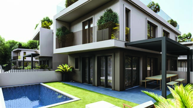 Kuće se sastoje od stepeništa, kuhinje, dnevnog boravka, blagavaone i WC u prizemlju, a na katu dvije spavaće sobe i dvije kupaone. Kući pripada parkirno mjesto u garaži.